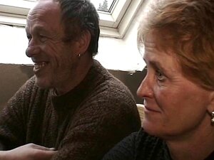 Jeans striptease., Oudere trio seksfilm met Duitse vrouw die 2 mannen neemt