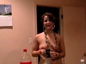 Donkerharige vrouw met grote tieten wordt meerdere keren geneukt op het feest