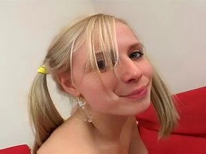 Schatje blonde Cherry Kiss slikt twee doses sperma door