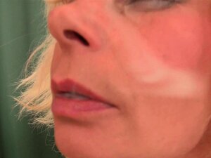 Rijpere Blonde Dame Jacks Af Een Naakt Guy